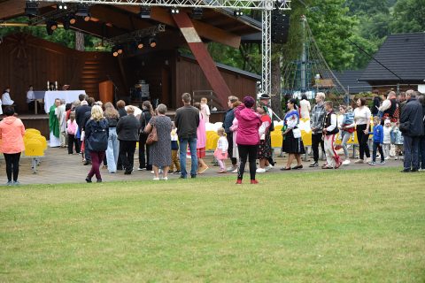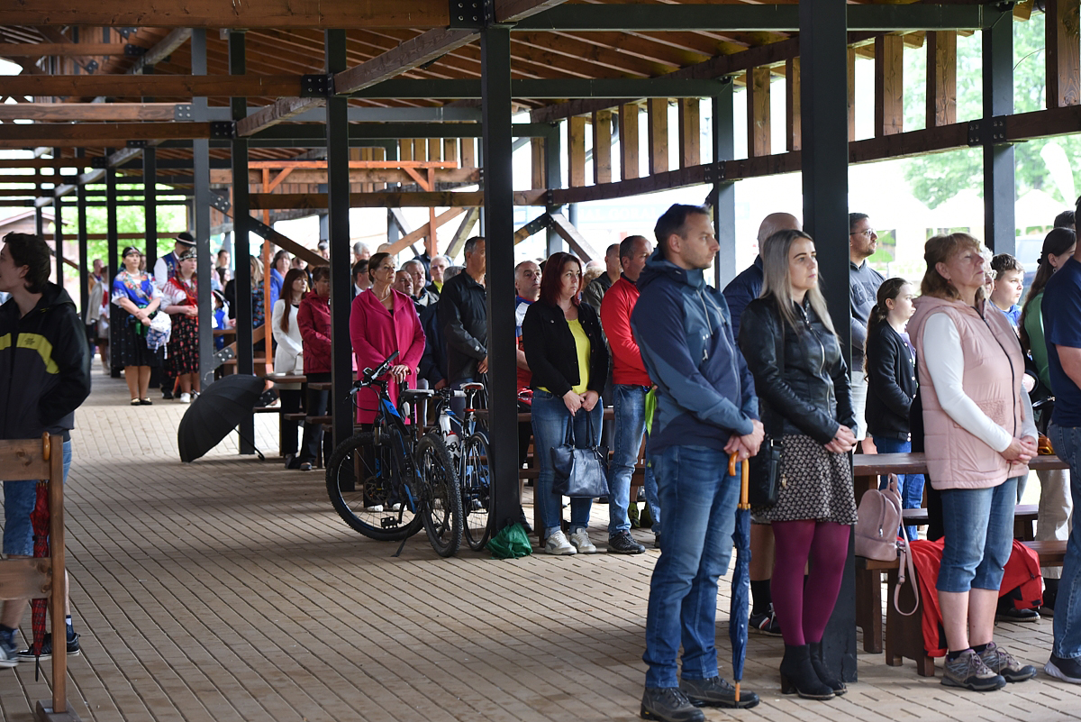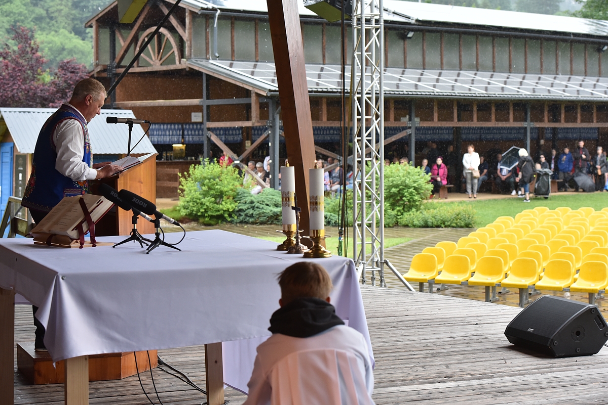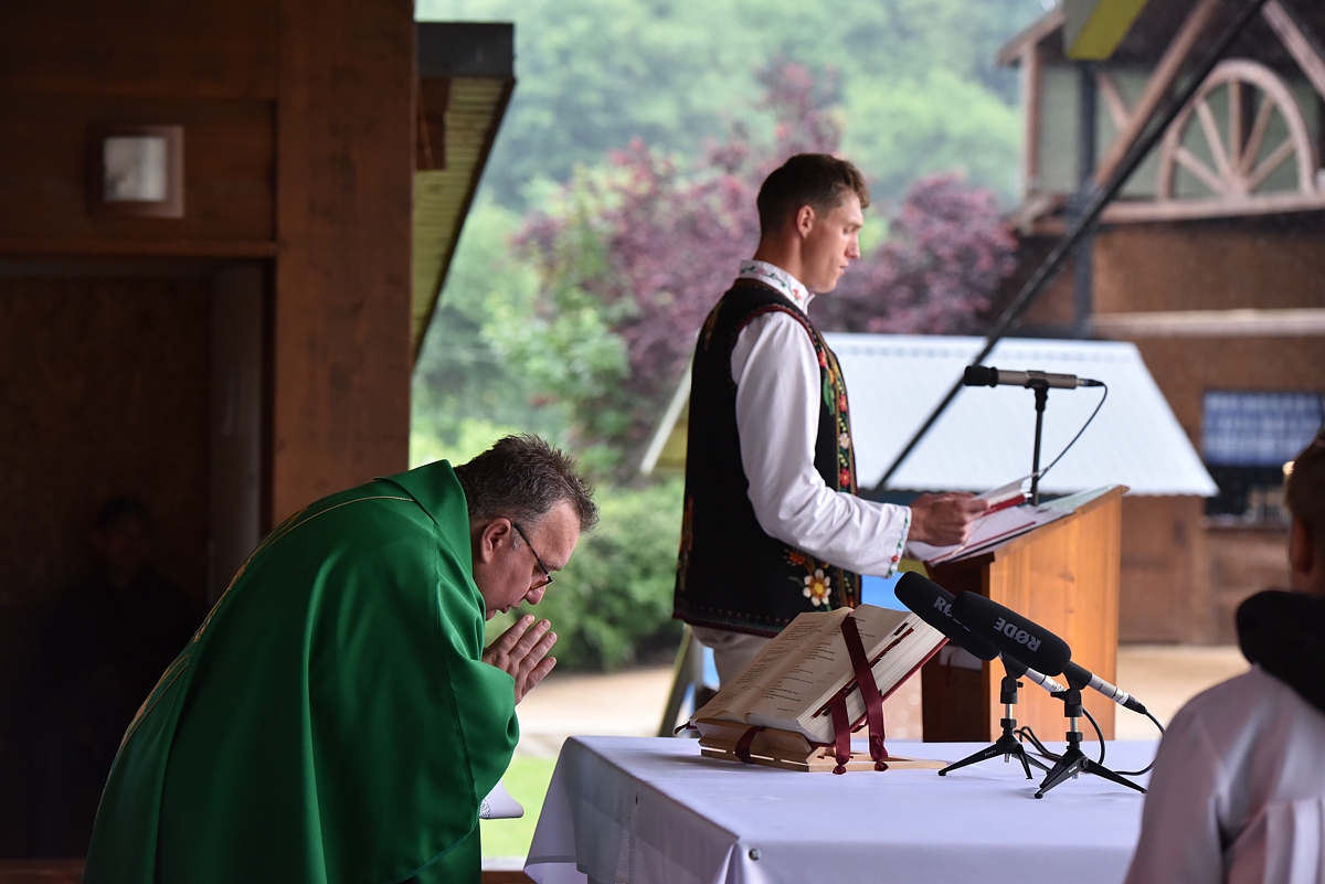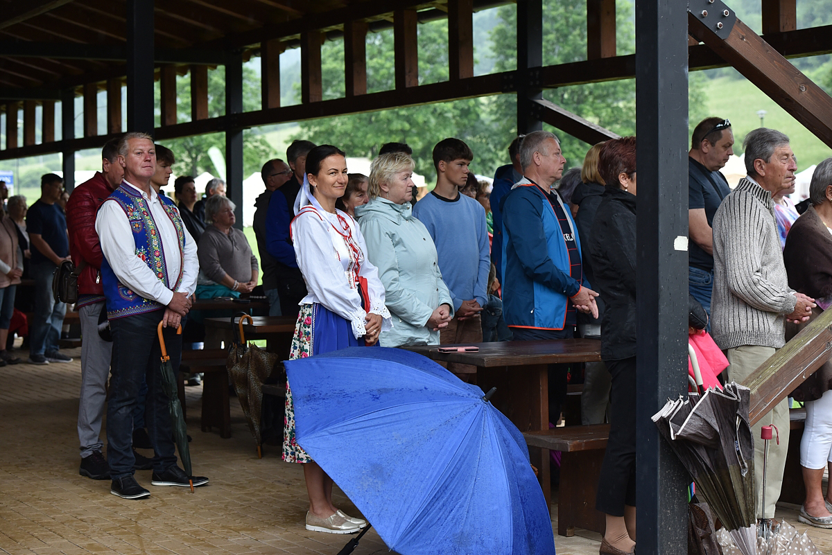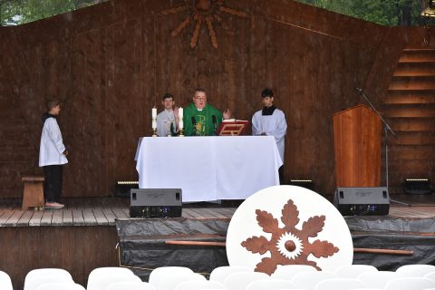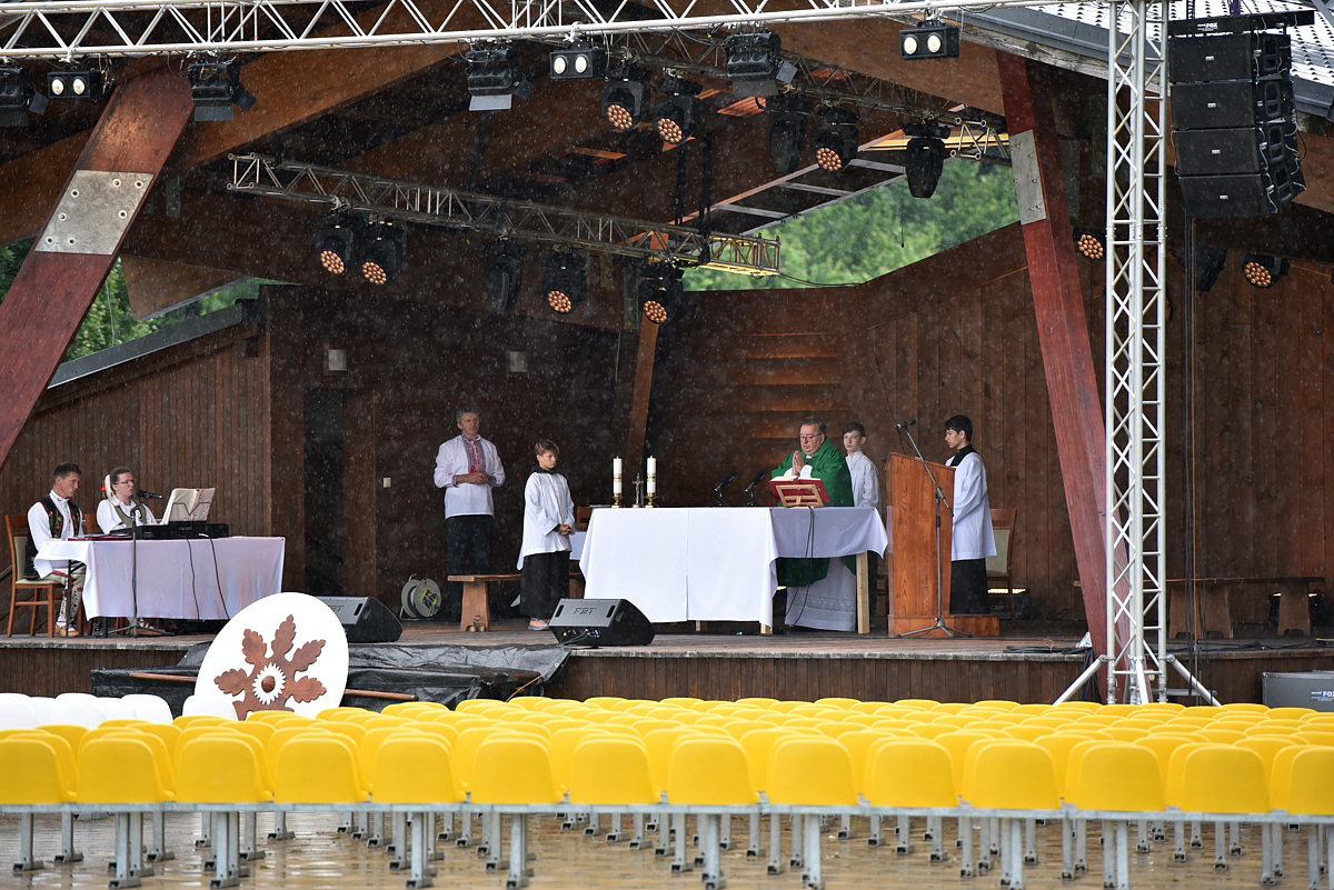 Krojovaná svätá omša, na javisku festivalu, celebroval Mgr. Pavol Vaňovský, farár