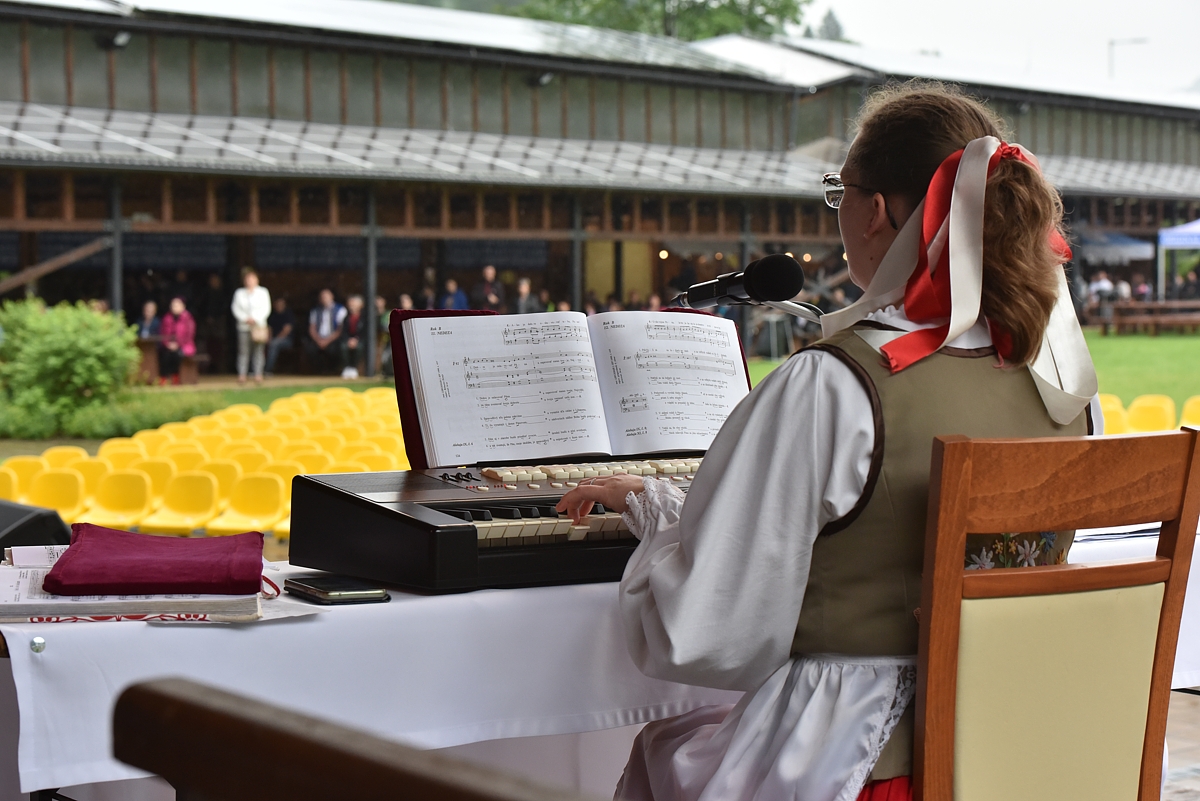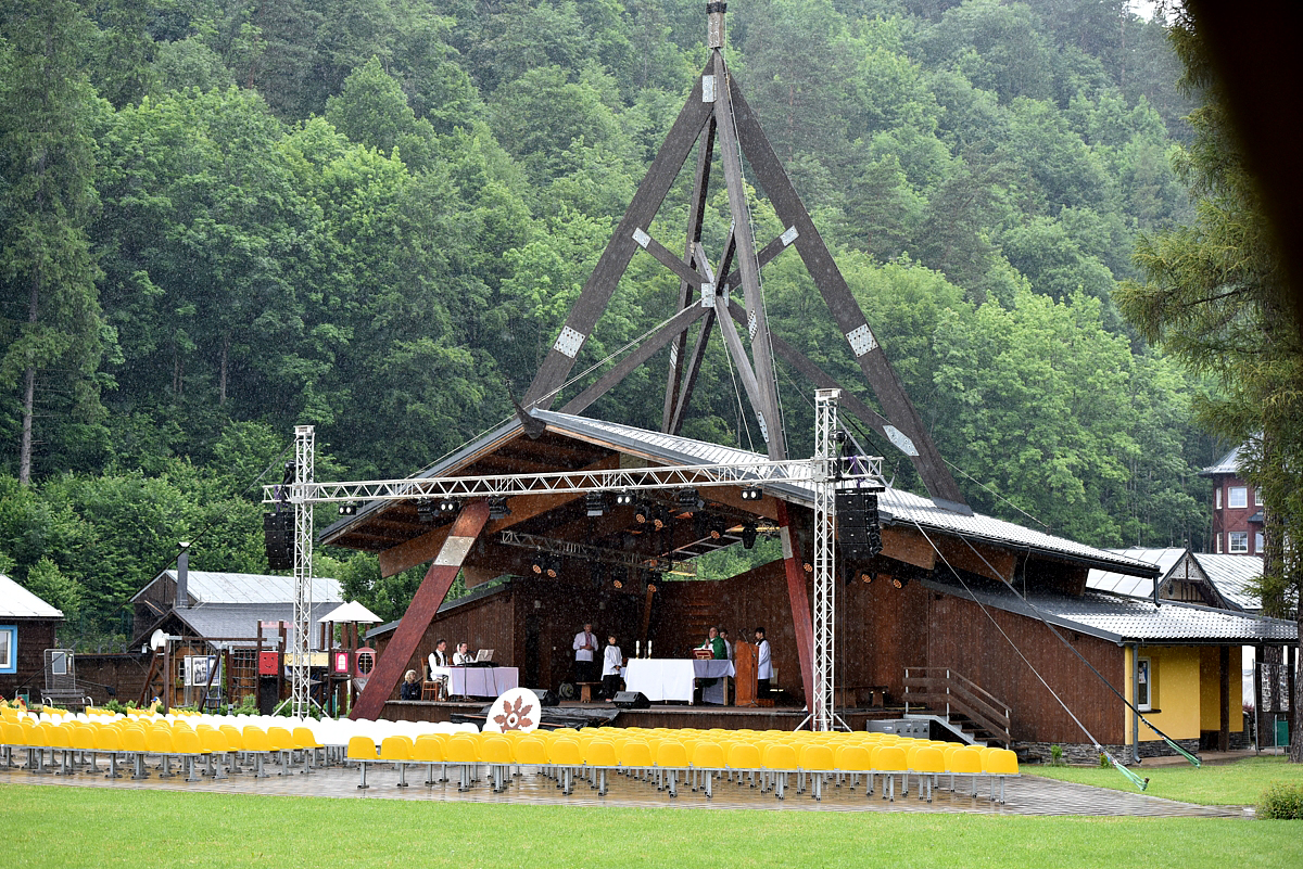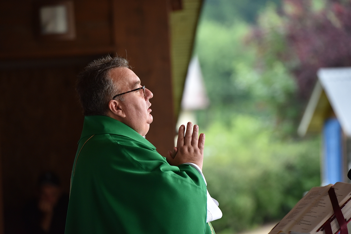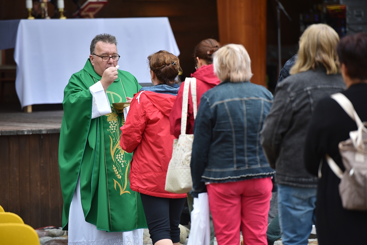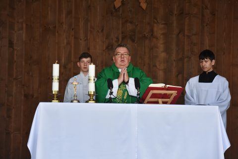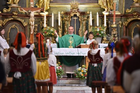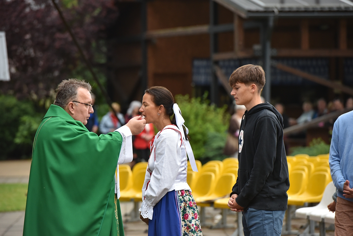 Krojovaná svätá omša, na javisku festivalu, celebroval Mgr. Pavol Vaňovský, farár