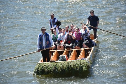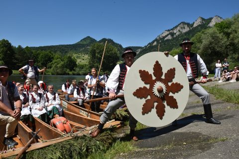 Privítanka pod Troma korunami, tradičný krojovaný splav na pltiach s účinkujúcimi festivalu a pozvánka pre návštevníkov Pienin navštíviť aj náš festival, ktorá sa zrealizovala na Prístavisku Pod lipami s príhovorom pána starostu obce Červený Kláštor Štefana Džurného, privítanka sa zrealizovala pod réžiou obce Červený Kláštor