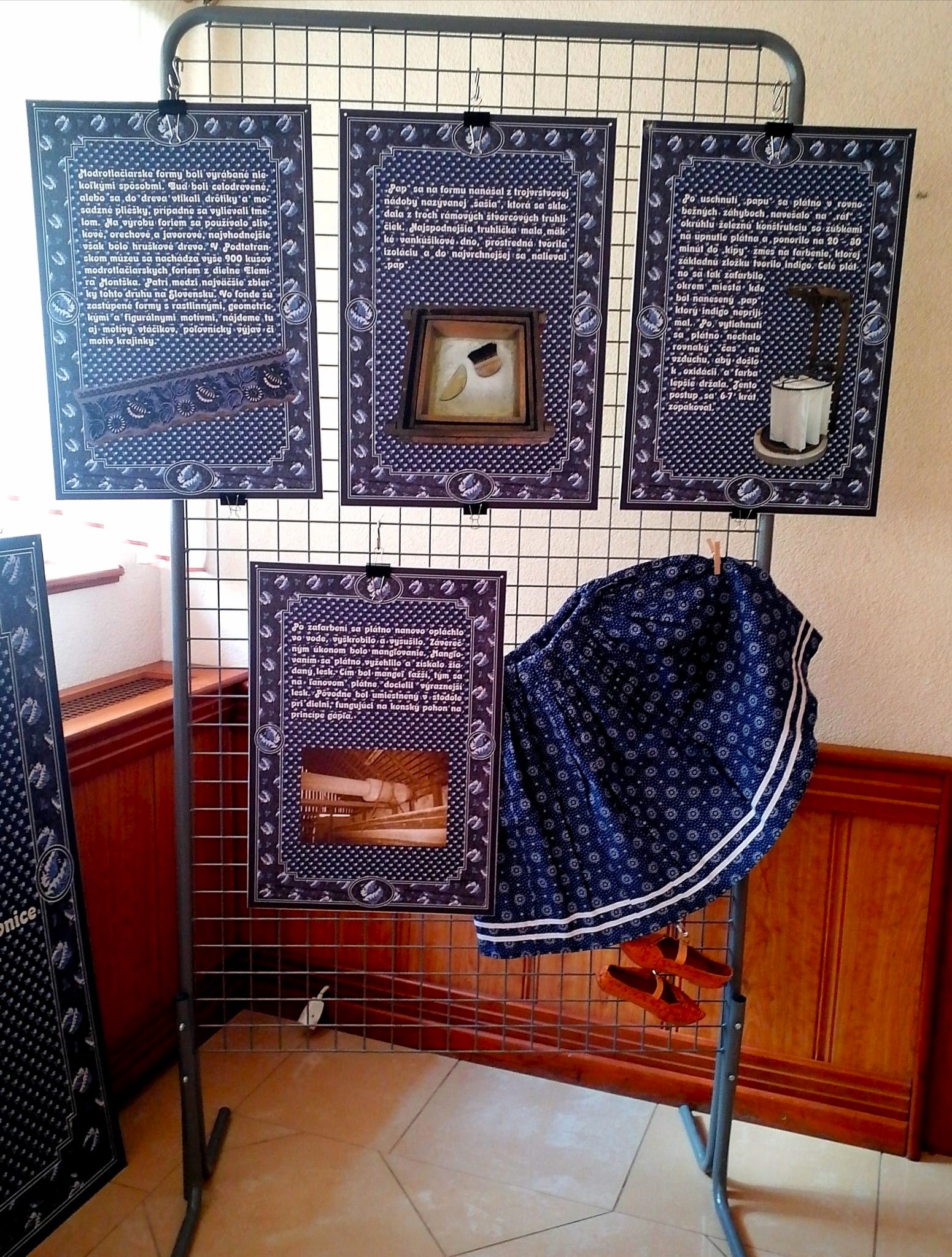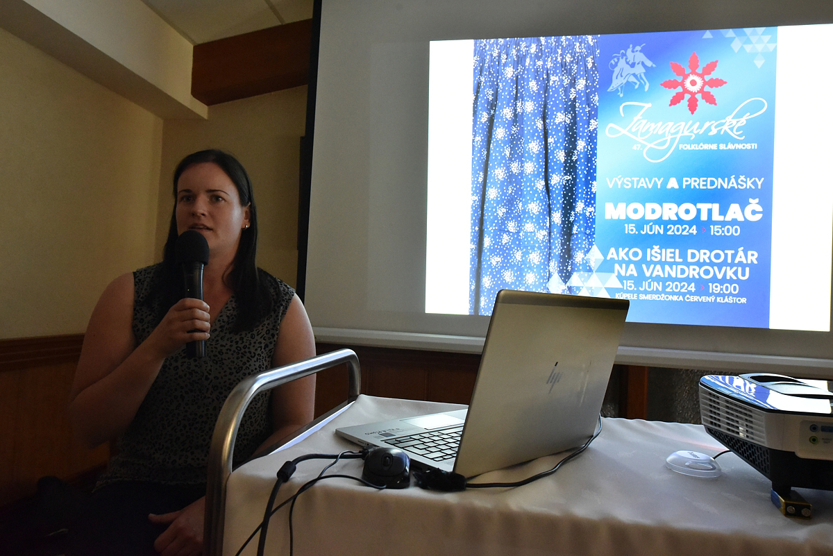 Modrotlač, odborná prednáška s výstavou artefaktov, lektor etnograf Elena Bekešová, výstava bola zapožičaná z Podtatranského múzea v Poprade
