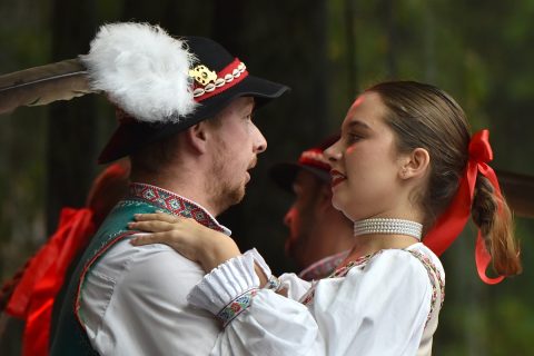 z vĺn ozývajú husličky a zvučné spevavé hlasy našich tanečných hostí.