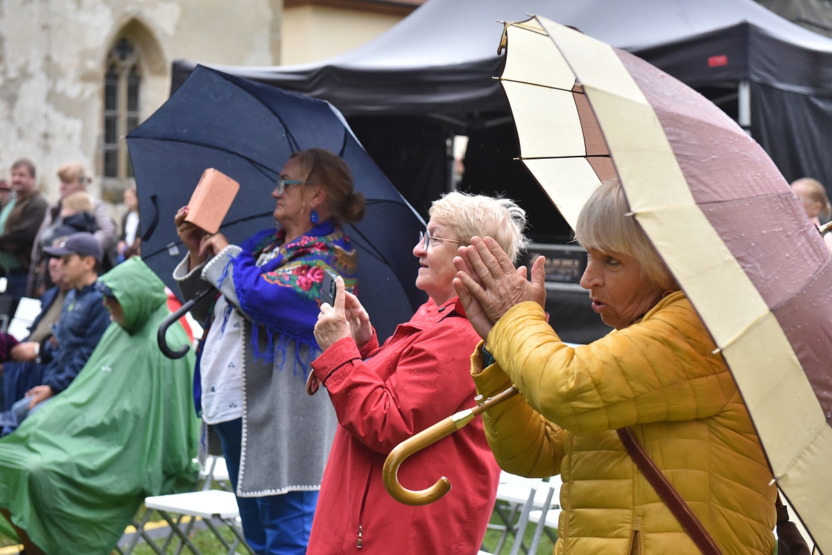 Medzi kvapkami dažďa nás roztancovali moderno ľudové piesne od kapely Štefana Repku Gorals – a veru, bolo na čo nielen pozerať, ale aj tancovať a spievať, tradíciám sme dali priestor predstavením najmenších, starších, najstarších nositeľov ľudových tradícií