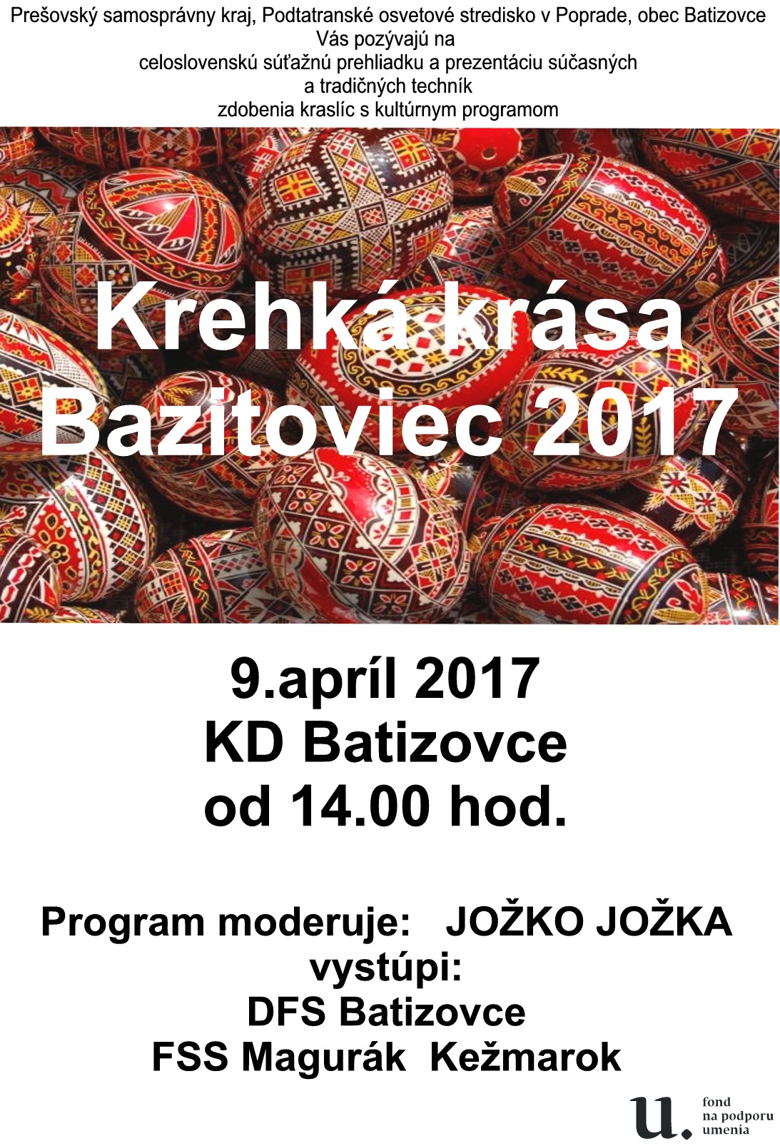 Súťaž s celoslovenskou účasťou s názvom Krehká krása Batizoviec sa koná každoročne v predveľkonočnom období. O účastníkov nebola núdza ani v roku 2017 a prihlásilo sa mnoho šikovných ľudí so svojimi krásne vyzdobenými vajíčkami. Výzdoba veľkonočných vajec a ich prítomnosť v období osláv veľkonočných sviatkov je veľmi dôležitou súčasťou duchovného rozmeru tradičnej ľudovej kultúry. Vajce je symbolom zrodu nového života, plodnosti a je symbolom jari. Tak ako vo všetkých oblastiach ľudovej kultúry, tak aj pri zdobení veľkonočných vajec poznáme v rámci Slovenska rôzne spôsoby výzdoby a mnohé techniky. Súťaž Krehká krása Batizoviec je krásnou oslavou našich tradícií a pripomienkou kultúrneho dedičstva Slovenska.