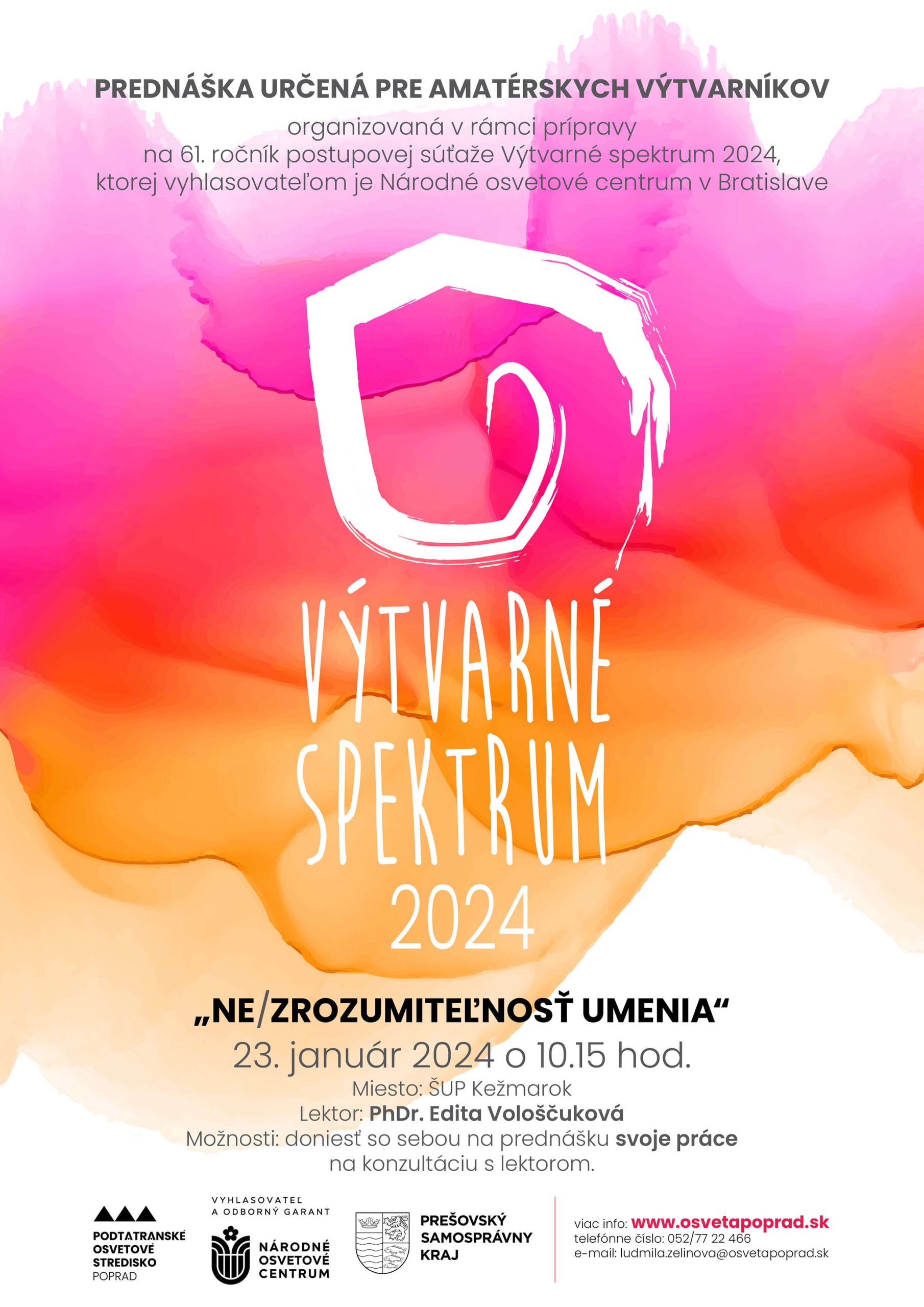 Prednáška s vizuálnou dokumentáciou, organizovaná v rámci prípravy na regionálne kolo 61. ročníka postupovej súťaže Výtvarné spektrum 2024 pre okresy Poprad, Kežmarok, Levoča, Prešov, Sabinov, ktorej vyhlasovateľom je Národné osvetové centrum v Bratislave.