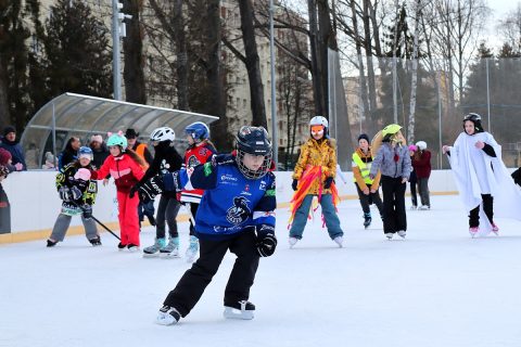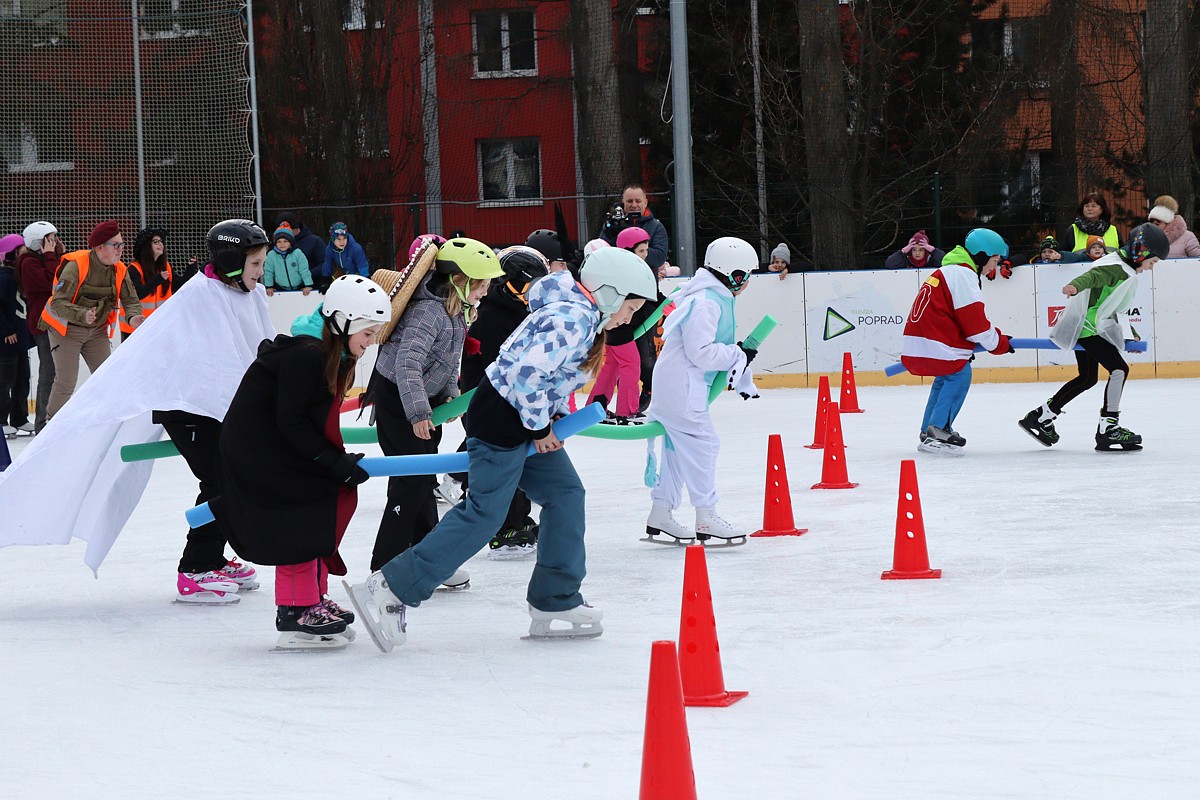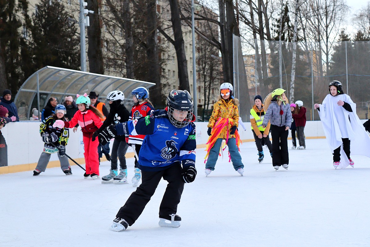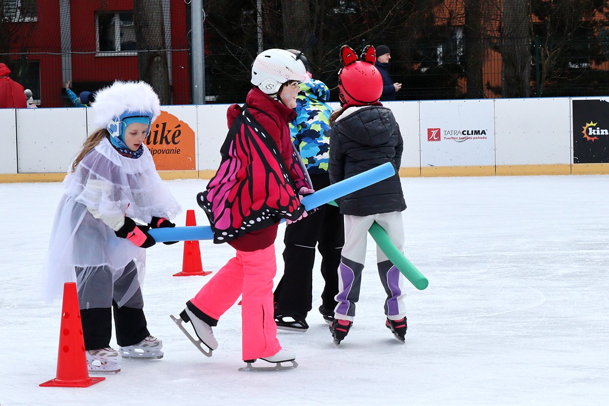 na ľadovej ploche pri CVČ Poprad od 13.30hod. sa stretlo do 50 odvážnych farebných masiek na korčuliach, ďalších menej odvážnych divákov bez korčulí, detí, rodičov, starých rodičov.