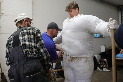 Celá príprava sa začína v deň sprievodu za skorého rána, pretože zhotoviť Slameniaka a Brucháča trvá niekoľko hodín.