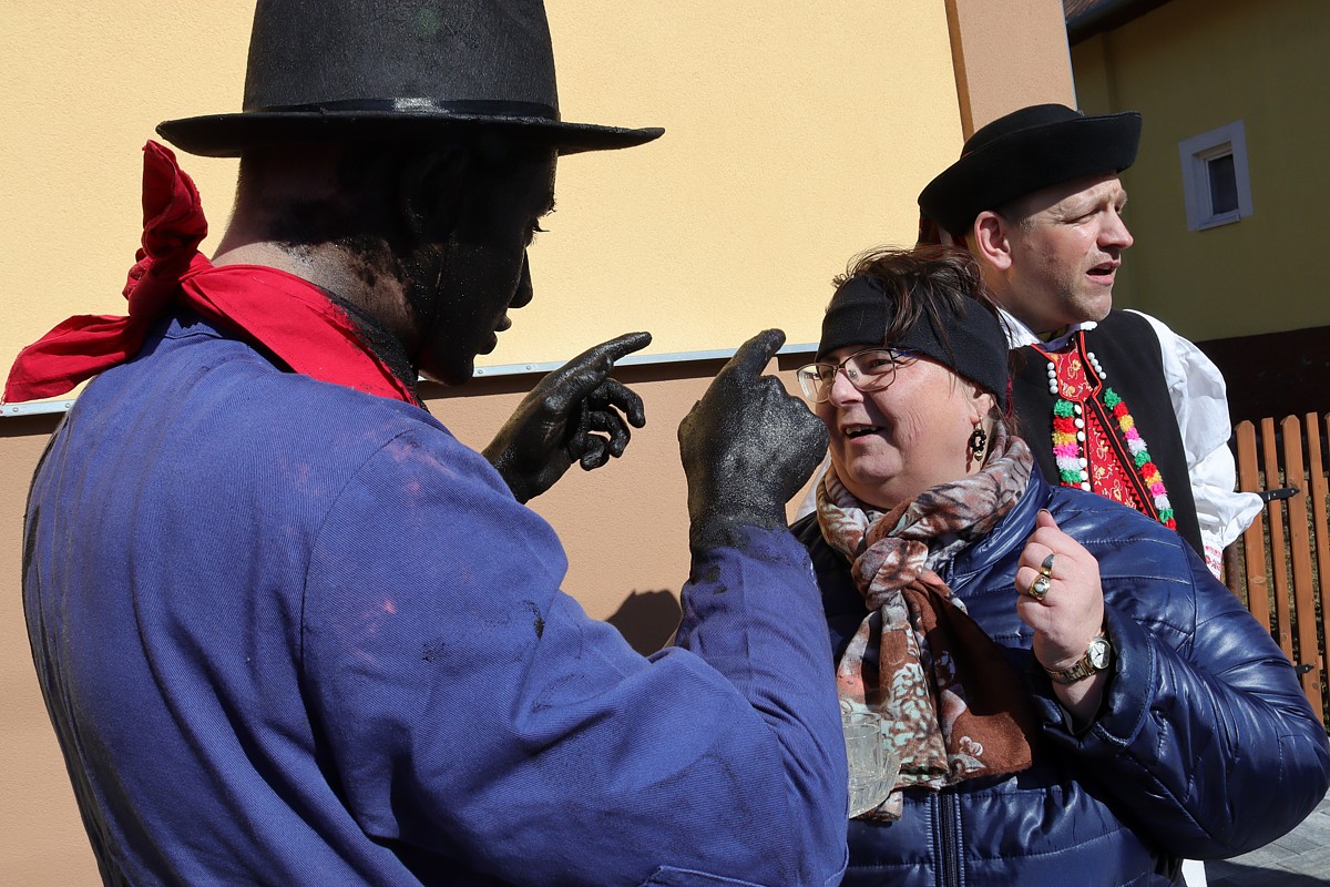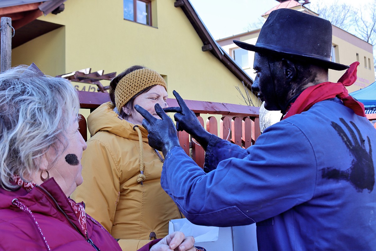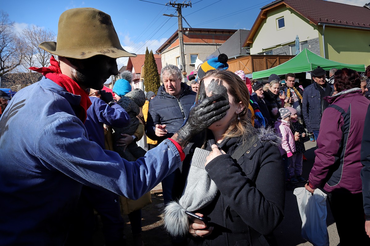 Diváci a účastníci sprievodu si mohli zatancovať s maskami, zajesť, čo to vypiť a ten, kto neunikol fašiangovej maske – kováčovi s čiernou zamazanou tvárou a rukami – dostal nádielku černoty nielen na tvár / zmes Indulona a sadze /.