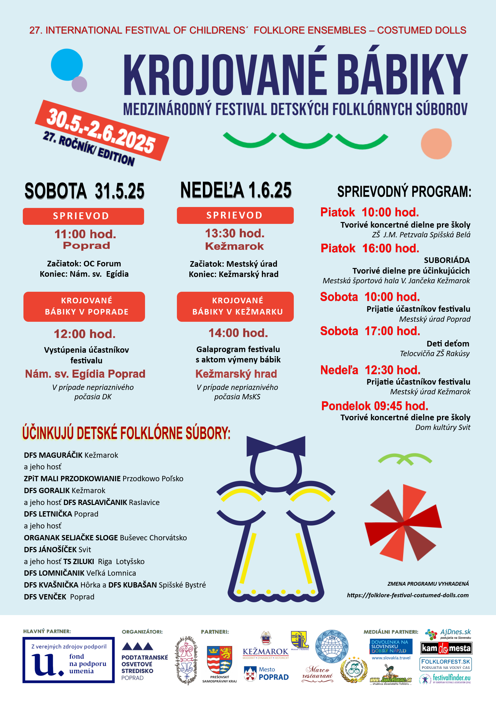 Srdečne Vás pozývame na 27. ročník Medzinárodného festivalu detských folklórnych súborov Krojované bábiky 2025.