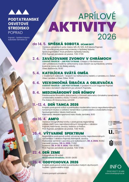 Ponúkame prehľad plánovaných aktivít na mesiac apríl 2026,