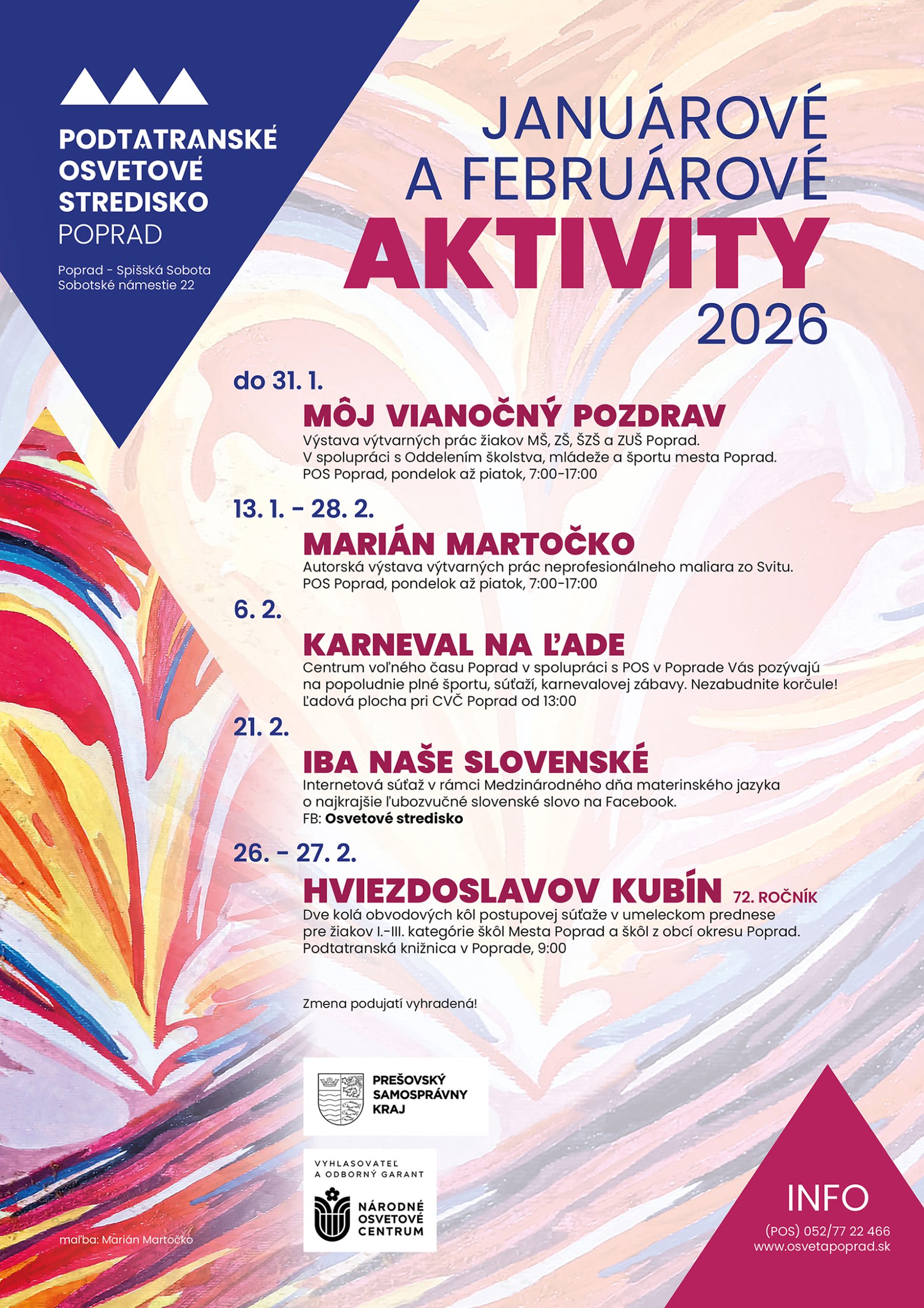 Ponúkame prehľad plánovaných aktivít na január a február 2026,