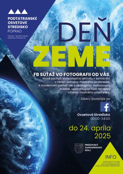 zapojte sa svojou fotomometkou do súťaže na našej FB OSVETOVÉ STREDISKO o nakreatívnejšiu aktivitu v rámci Dňa Zeme, ktorý pripadá na 22. apríl 2025.