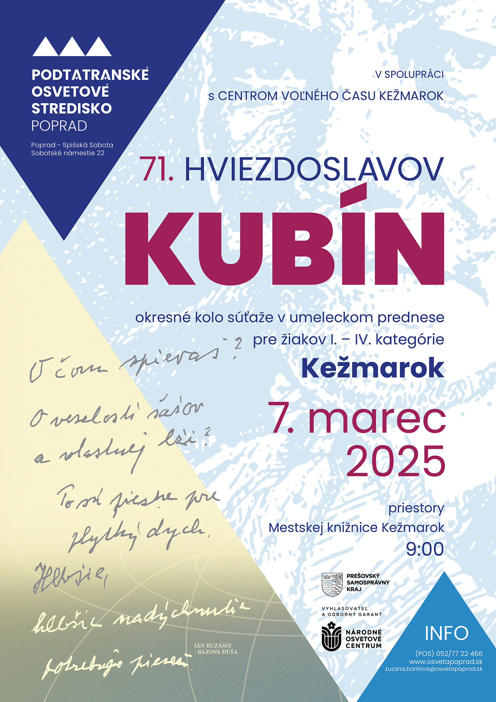 71. ročník súťaže Hviezdoslavov Kubín – okresné kolo súťaže pre Kežmarok.
