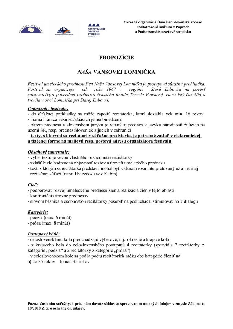 okresnú postupovú súťaž v umeleckom prednese