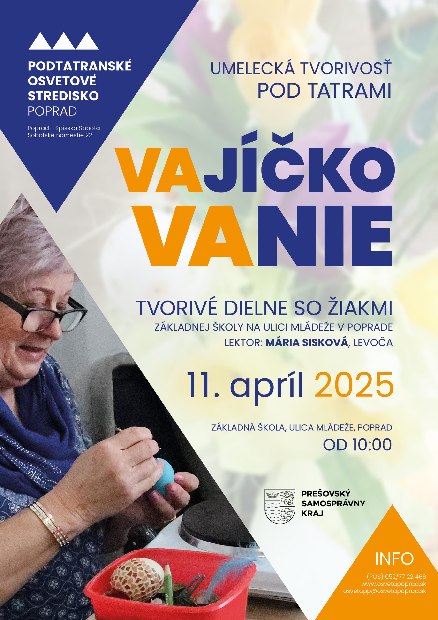 o lektorke: Mária Sisková pravidelne zúčastňuje našej celoslovenskej súťaže a výstavy Krehká krása Batizoviec, / 13.apríl 2025 od 12.00 KD Batizovce / vyrába veľkonočné vajíčka rôznych veľkostí tradičnou a modernou technikou, veľkonočnú výzdobu
