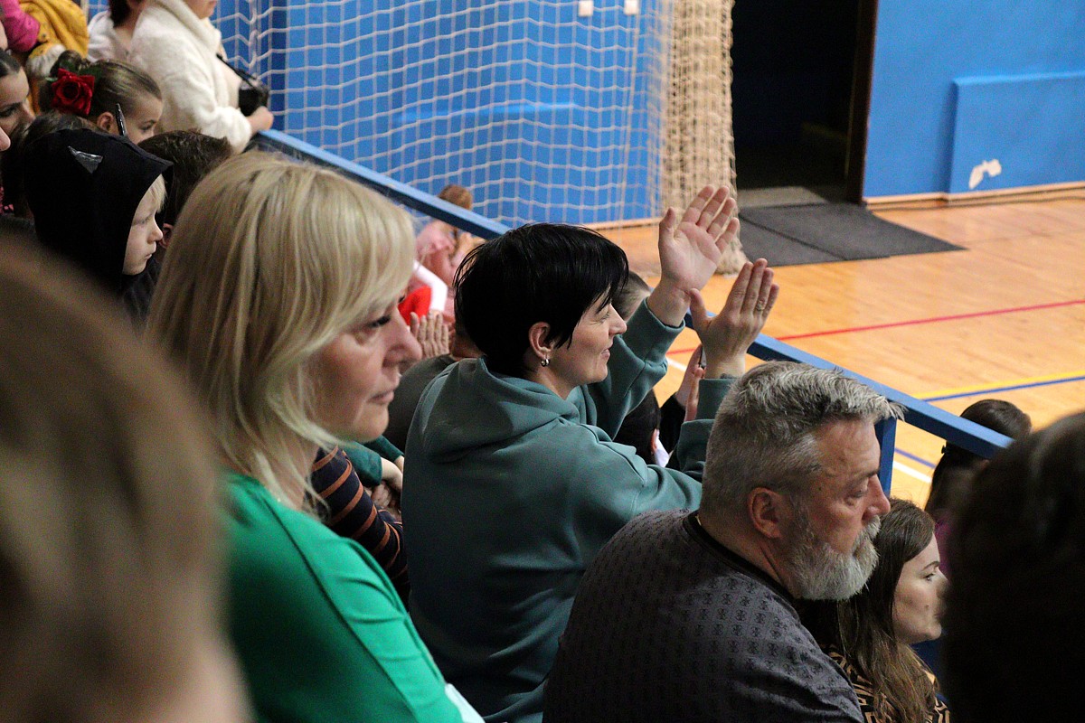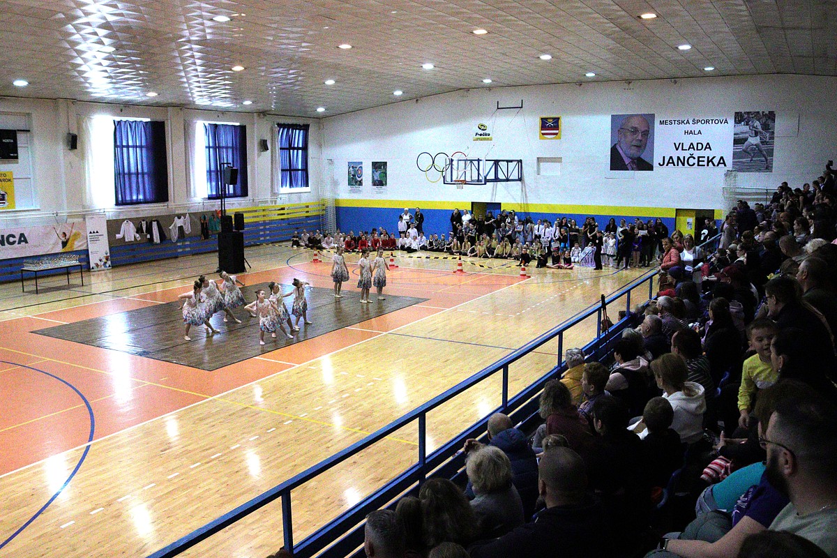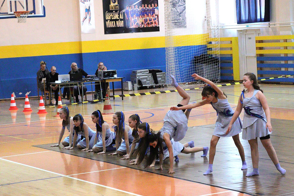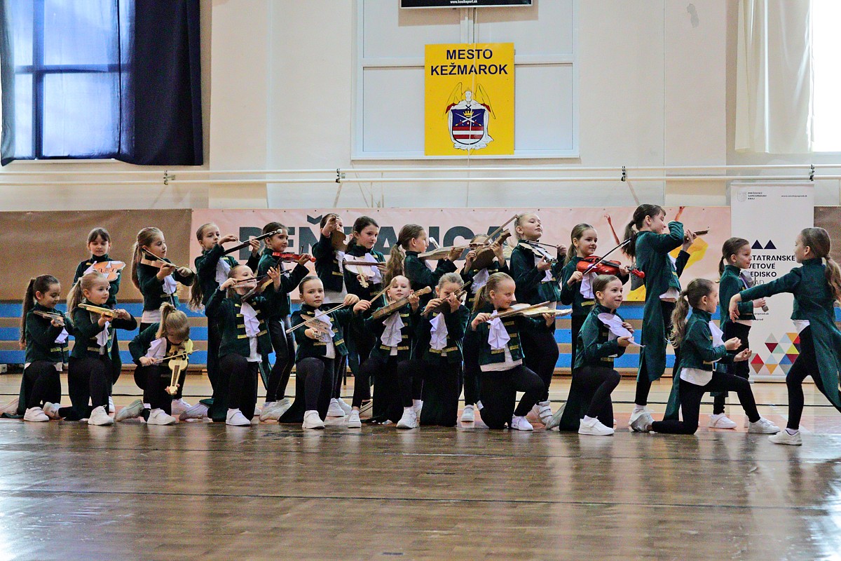 z rozhodovania, rytmus, farby, potlesk – to všetko výrazne kontrastovalo s aprílovým skoro-zasneženým rozfúkaným počasím v nedeľu 6. apríla 2025 za oknami Športovej haly Vlada Jančeka v Kežmarku.