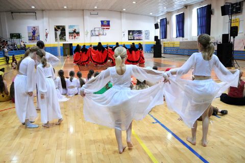 Od skorého rána / 6.30 / sa do športových priestorov zhŕňali tanečníčky – prevažne,
