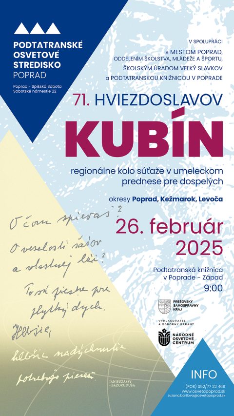 Súťaž: HVIEZDOSLAVOV KUBÍN 2025 / obvodné kolo Poprad I.-III, regionálne kolo V. kategória - výsledky