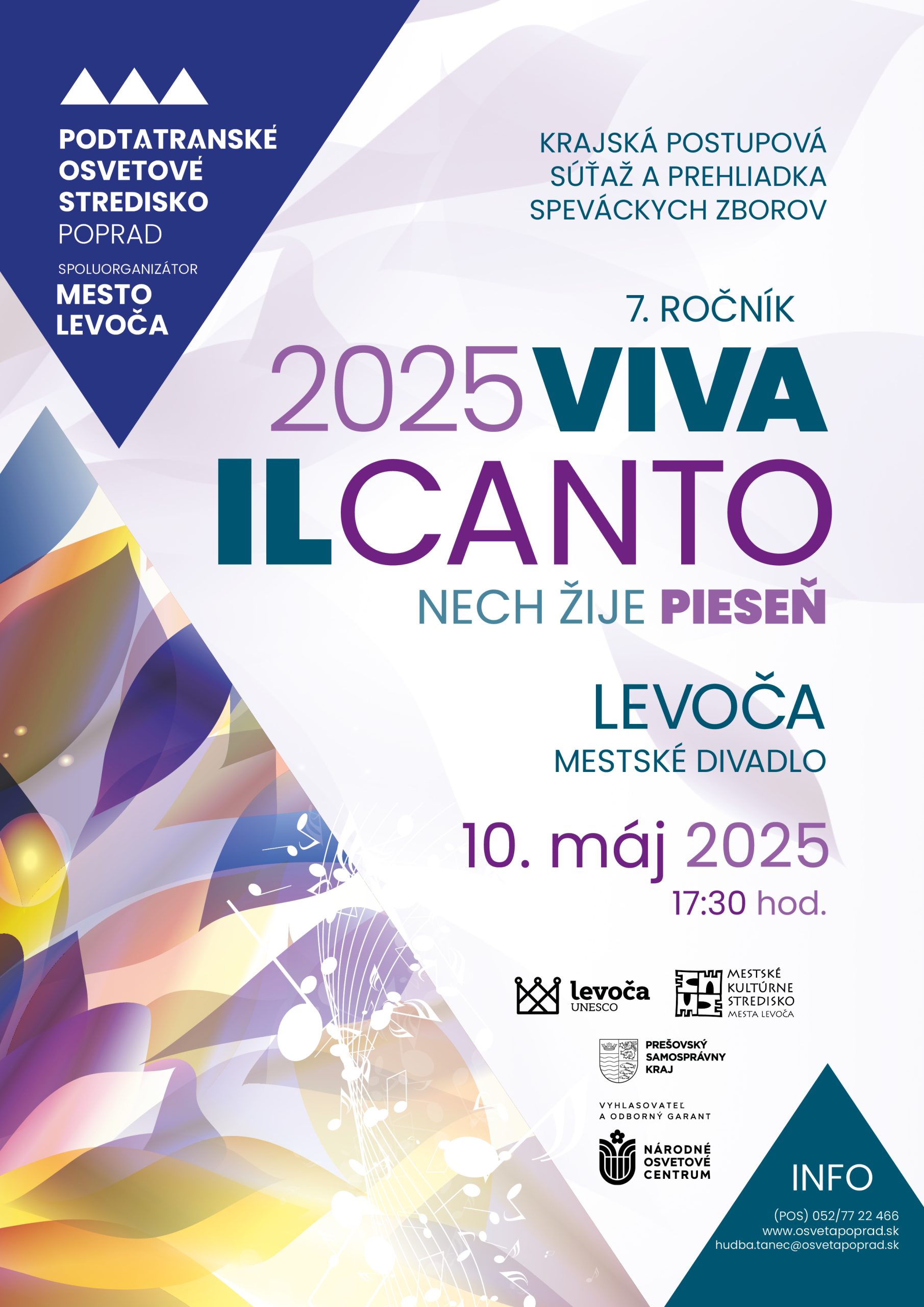 10. mája 2025 sa v priestoroch Mestského divadla v Levoči zrealizoval 7. ročník VIVA IL CANTO pre spevácke zbory – súťažiacich prešovského kraja.