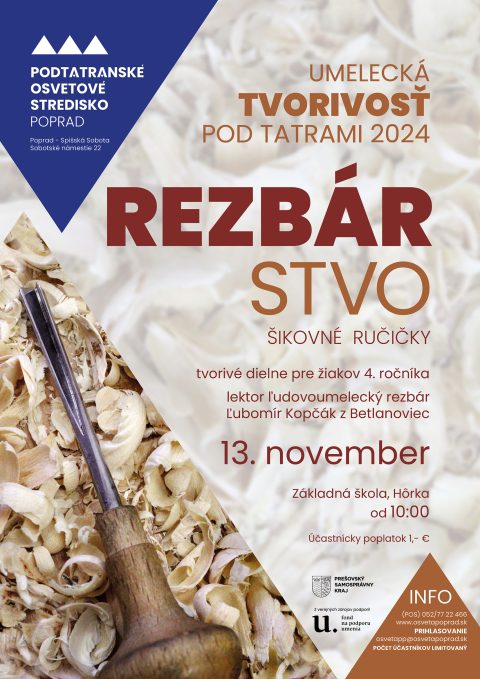 Podtatranské osvetové stredisko v Poprade v rámci série jesenných tvorivých podujatí zrealizovalo ďalšie tvorivé dielne Šikovné ručičky- Rezbárstvo.