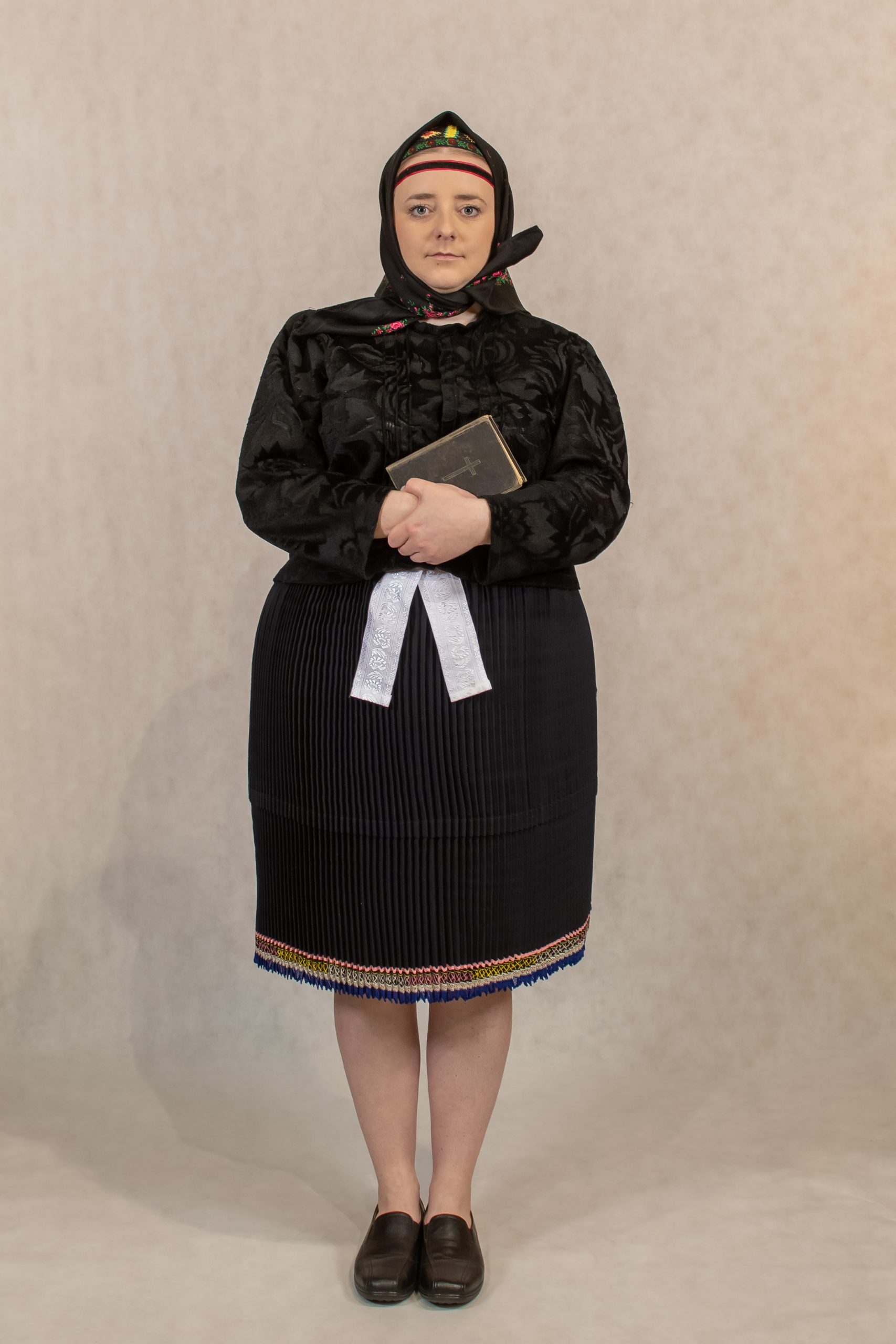 hustecka, perly, poska, ľajbik, kydeľ, fartuch z hatlasu, pos/snorky, boty
