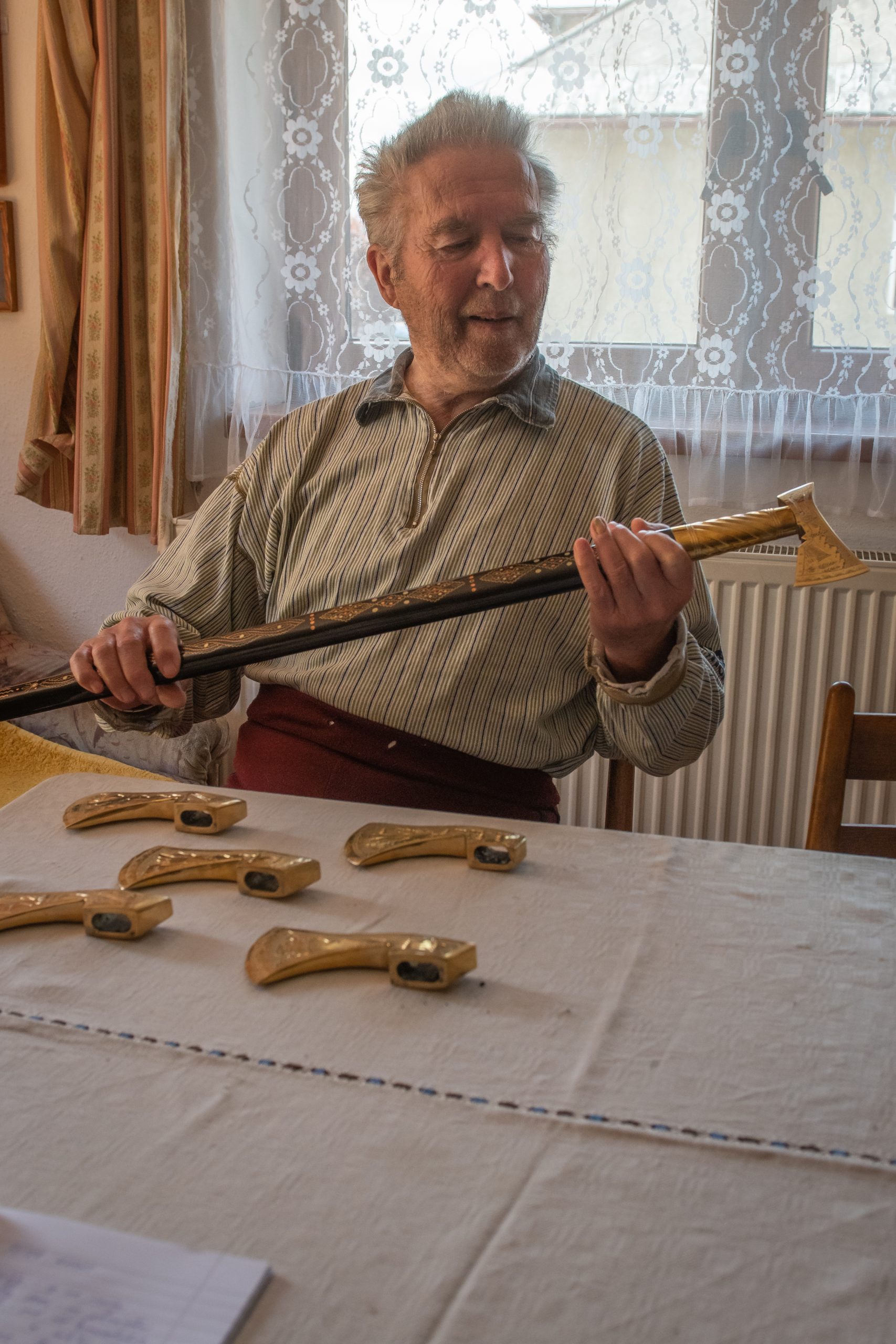 Autor hovorí: Začalo to prvým zhliadnutím filmu „Rok na dedine“ v roku 1967. (Nie Rock :), aj keď si dodnes myslím, že rokenrol v Amerike je subkultúrou slovenských ľudových tancov a piesní, ktoré tam priniesla masívna emigrácia slovenských vysťahovalcov do USA /do roku 1920 takmer 500.000/ a práve po roku 1920 sa rokenrol začal zľahka segregovať od amerického blues a jazz. ( mimochodom tiež produktov násilne importovaného obyvateľstva čiernej pleti, tento druh je však poznačený spleenom na rozdiel od energickej a dynamickej hudobnej skladby rokenrolu -Slováci šli za vidinou lepšej budúcnosti s energiou a vervou nám vlastnou.), ale späť k remeslu. Nádherné kroje, herecké výkony, hudba a réžia K. L. Zachara a Martina Ťapáka si navždy získali dušu malého Martina. Chlap, ktorý mal na sebe krásny vybíjaný 4 či 5 prackový remeň pôsobil majestátne a sebavedomo. K tomu sa samozrejme neskôr pridal Bielikov Jánošik a mágia bola dokonaná. Myšlienka mať, vlastniť a nosiť takýto remeň bola prvým magickým momentom môjho života, celkom nezávislým od neskorších nánosov Platóna, Aristotela či Sokrata. Stopy remeselnej výroby som objavoval aj u môjho starého otca Martina Adlera, ktorý síce prežil významnú časť svojho života ako banský strelmajster v podtatranských baniach, ale jeho mladosť vysoko v horách Bihorskej župy bola spojená s nevyhnutnosť zvládnuť každé remeslo potrebné pre gazdovstvo na samotárskych lazoch. Odlieval zvonce, vyrábal krpce, drevený riad či drevené hrady a náradie pre poľnohospodárstvo. Pri ňom som pochopil, že okrem rozumu máme aj ruky a spojením týchto inštrumentom dokážeme vyrobiť veci, ktoré môžu byť spojením troch významov „utilitas – firmitas – venustas“ – (užitočný – pevný – krásny). Toto bolo pravidlo, ktorého sa držím už 40 rokov pri remenárskom remesle. Vynaložená energia a dôslednosť sa mi vracia v podobe úsmevu a spokojnosti majiteľov mojich výrobkov, ktorých vlastne stretnem len raz v živote ako zákazníkov, pretože ak sa o výrobok dobre starajú, tak sa z neho stane dedičný predmet.