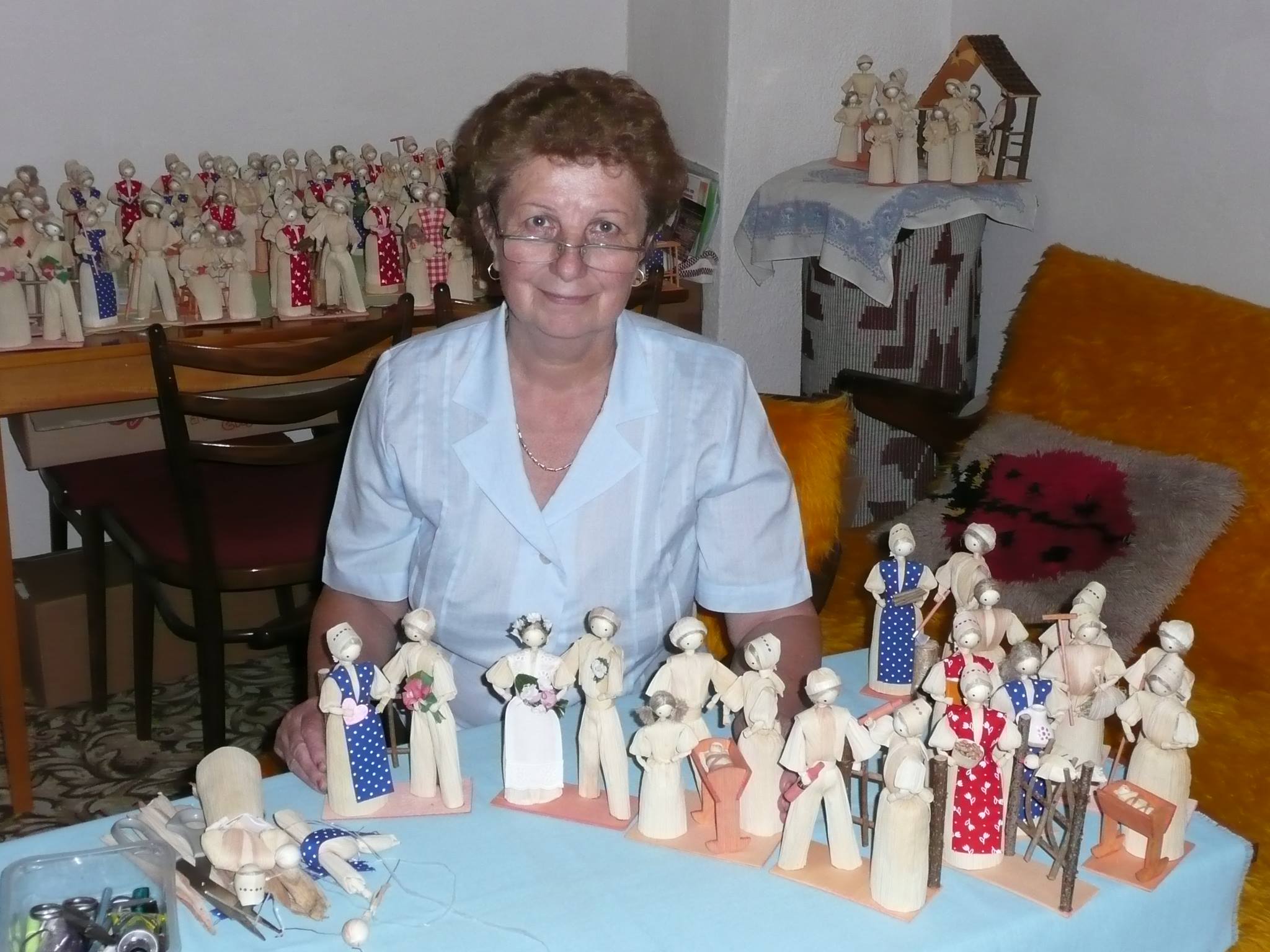 Materiál: prírodné pletivá. Samouk. Výrobe šúpoľových bábik sa venuje od roku 2004. Postup výroby si osvojila štúdiom literatúry a časopisov. Od roku 2008 spolupracuje s ÚĽUV-om.